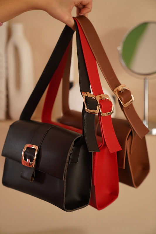 ჩანთა ოქროსფერი მეტალის დეტალებით