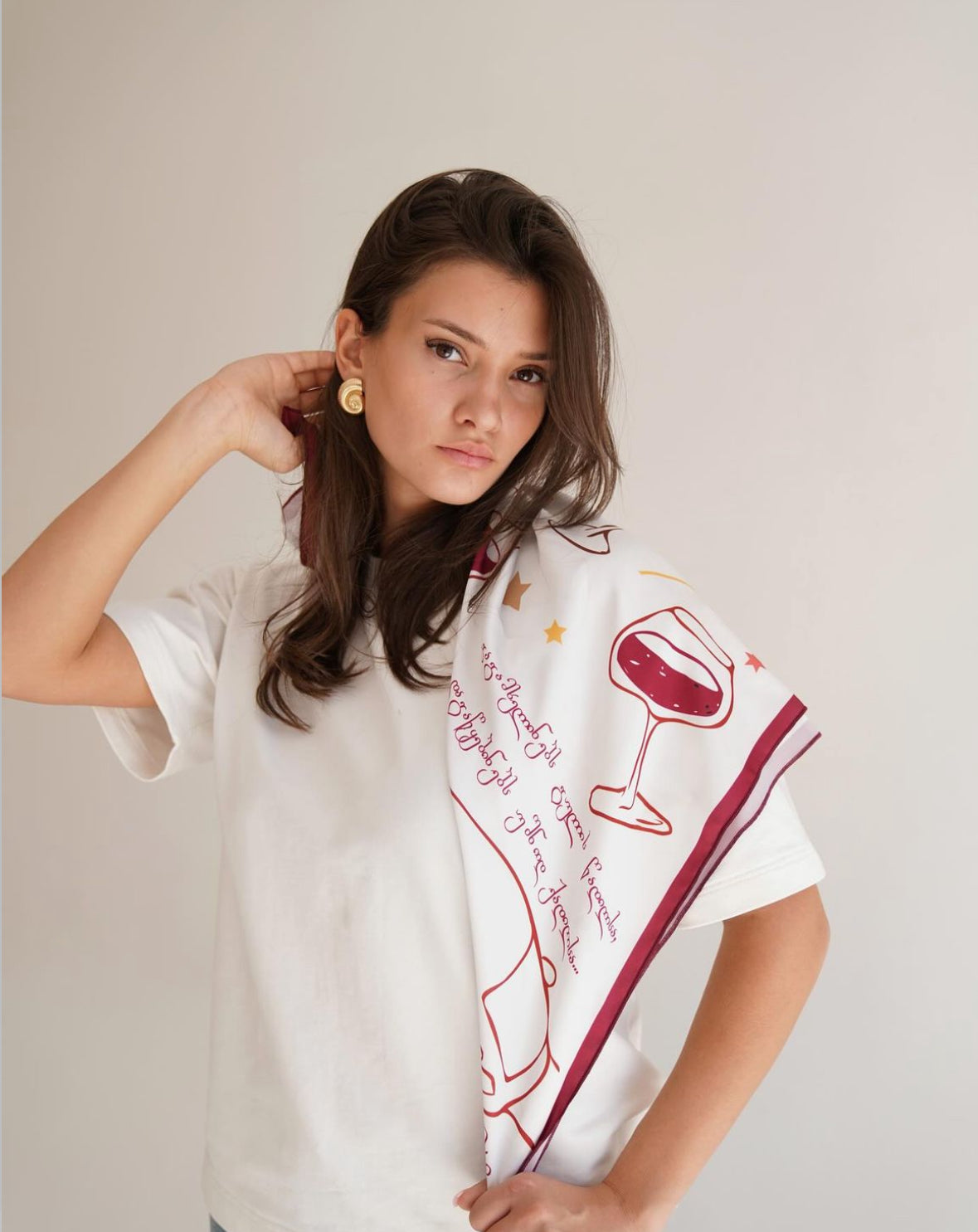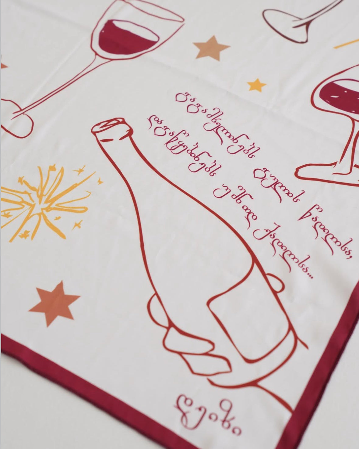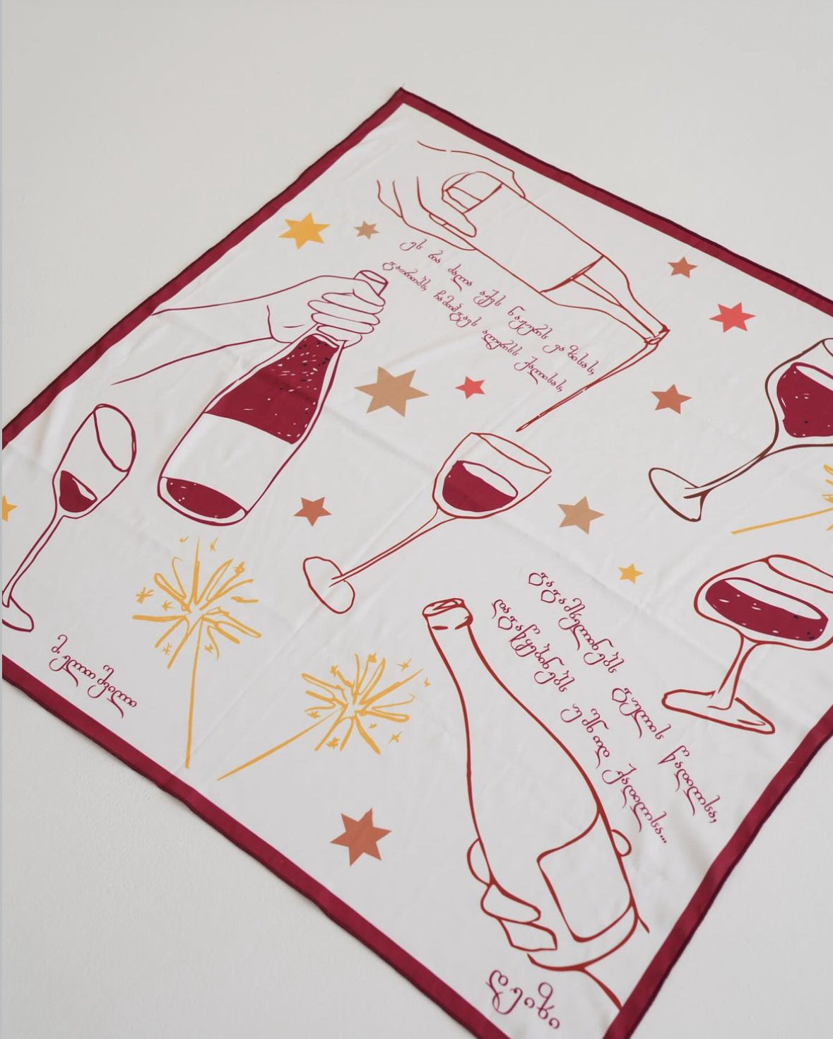 აბრეშუმის შარფი ღვინის ილუსტრაციით