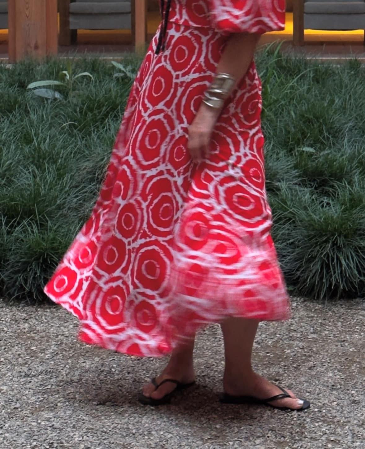 ტილოს კაბა ორნამენტებით