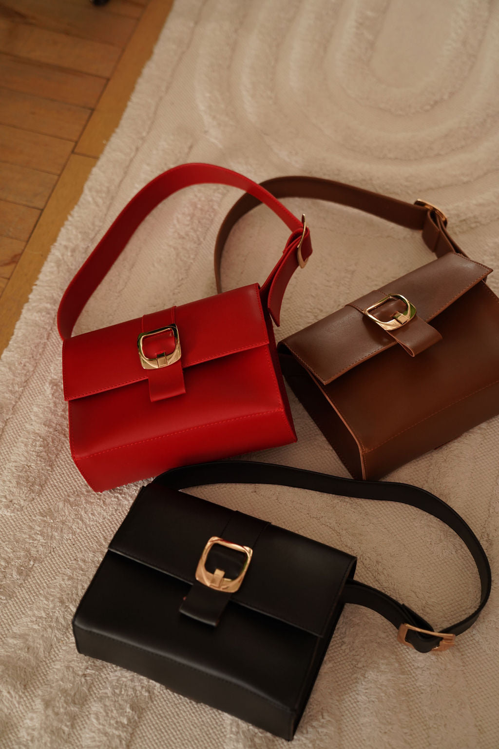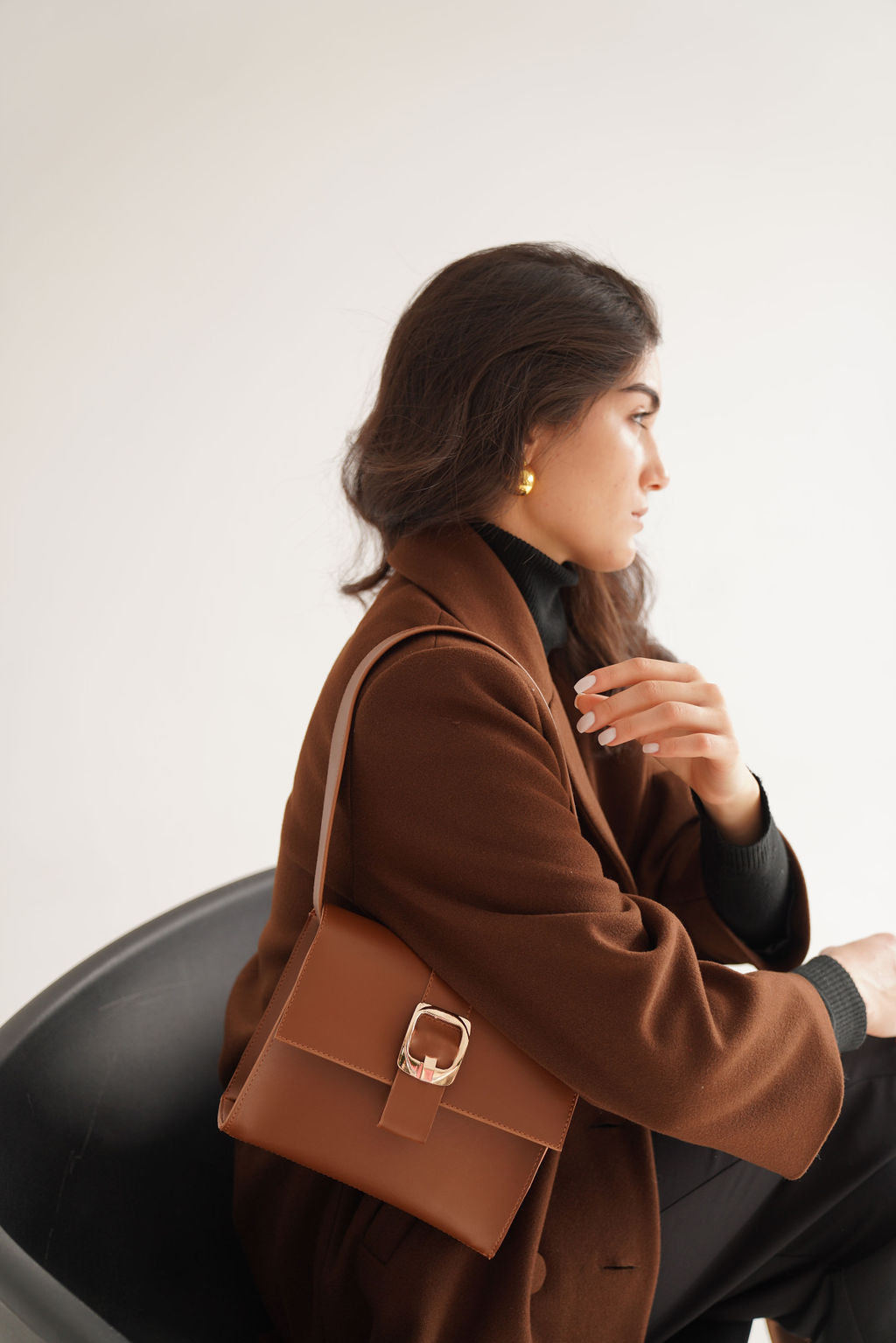 ჩანთა ოქროსფერი მეტალის დეტალებით